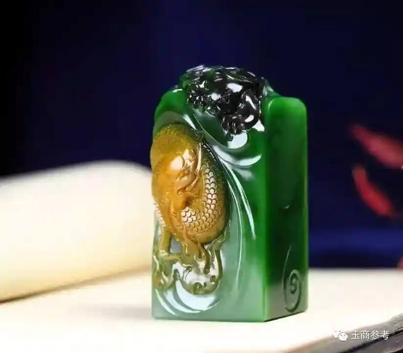 青海料的多色料常常是白玉带翠、带烟紫的形式出现,颜色瑰丽多彩,再加上青海料的水透质感,堪称完美。