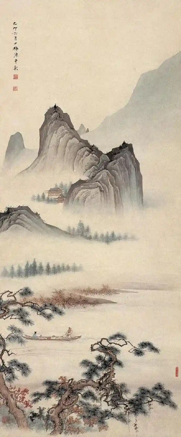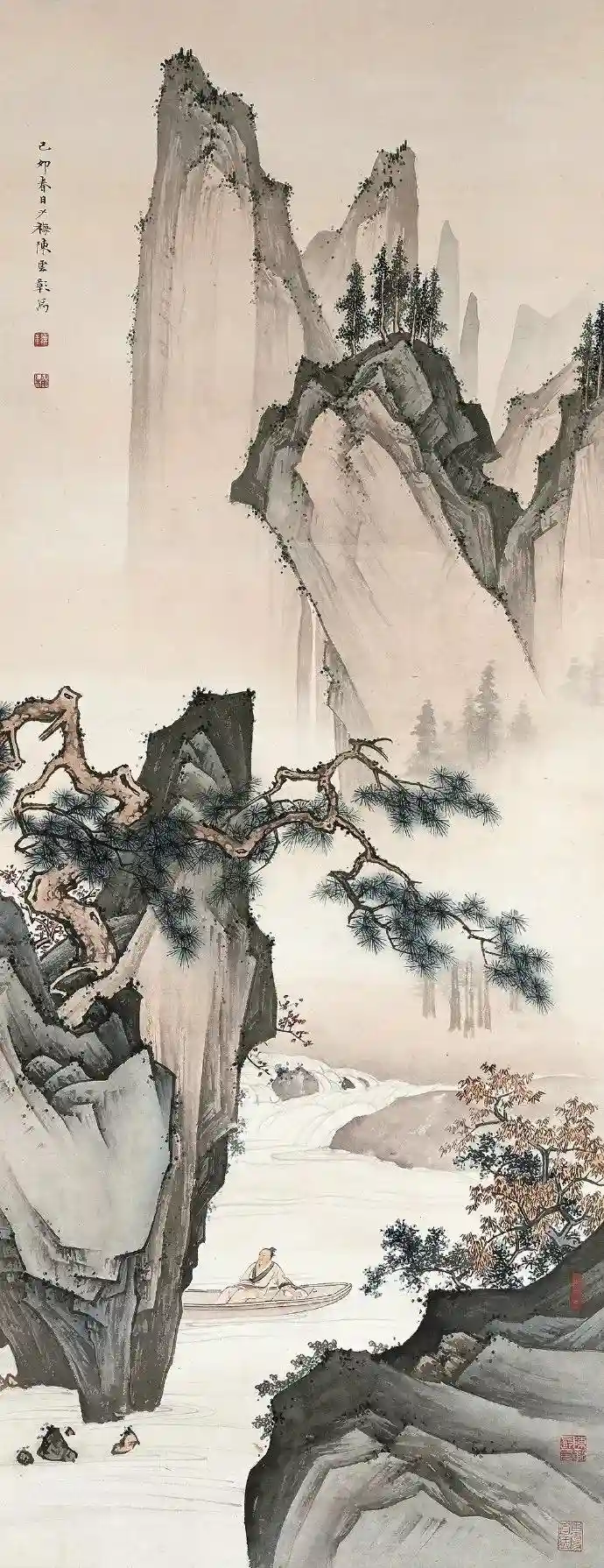 陈少梅《松溪泛舟图》104.5cm×40cm