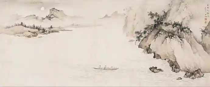 陈少梅《赤壁夜游图》附局部28.5cm×68cm
