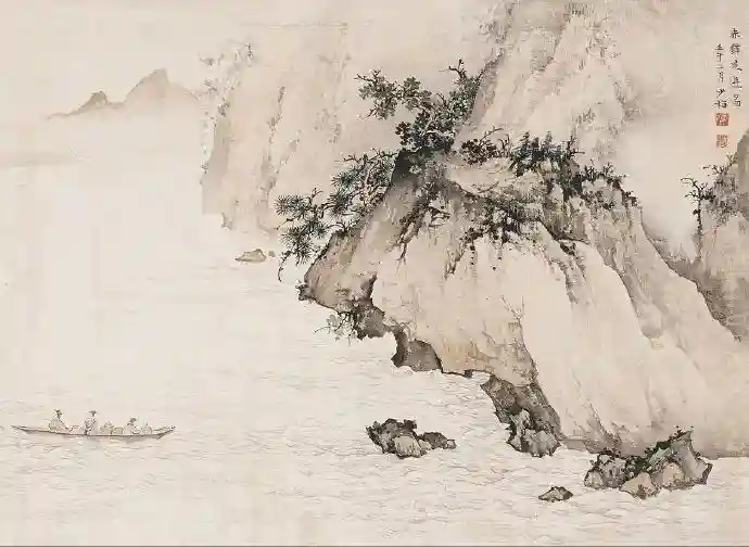 题识:赤壁夜游图。壬午二月。少梅。