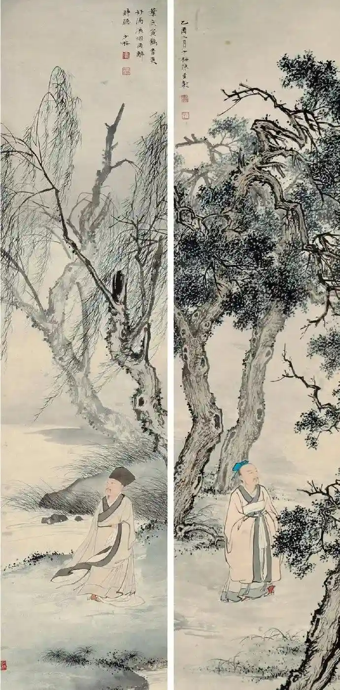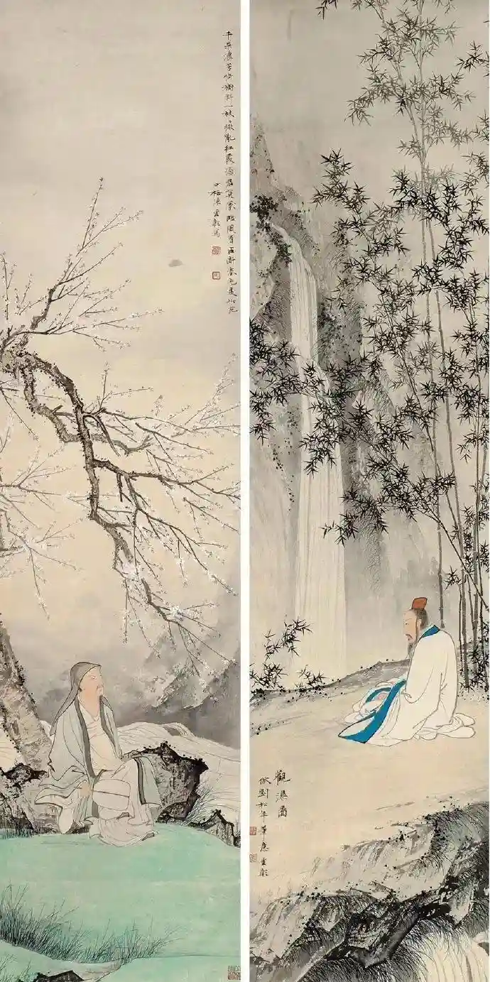 陈少梅的画作,山水多有人物点缀,人物多有山水环衬,二者常常根据题材和情感的需要,或谨细,或清秀,或粗放,不仅展现丰富的艺术面貌,也显示出画者的优秀艺术才华。