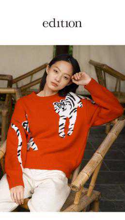每到新年之际,以生肖元素打造新年限定款成为了许多品牌的核心亮点,今年也不例外。为了迎接虎年的到来,edition、恩裳、Tommy等品牌将“萌虎”卡通形象或虎纹等元素融入了服饰设计之中,让潮人们在元旦、春节聚会中稳占“C”位。edition推出了老虎图案羊毛衫,甄选新西兰美丽诺羊毛+内蒙“软黄金”白羊绒,在时尚新潮的同时打造舒适亲肤的穿着体验。同样巧用虎元素的还有恩裳流苏虎头设计针织衫,经典红白配色搭配落肩设计,将居家慵懒风演绎到极致。潮男们不要错过Tommy虎年限定夹克,新年红、黑色虎纹双面穿着打造多元化时尚风格。