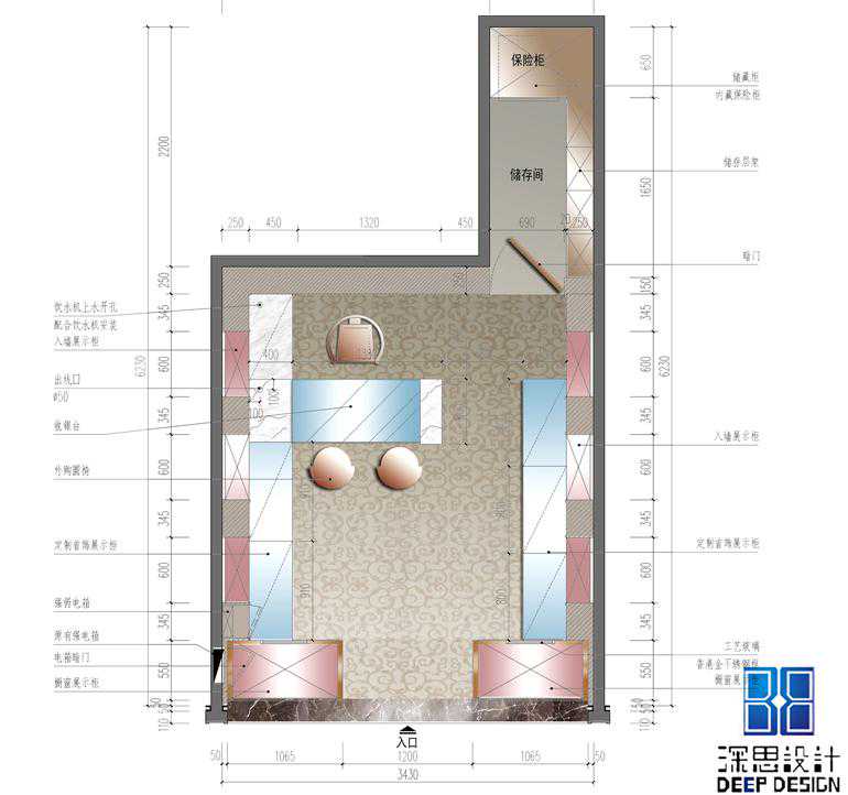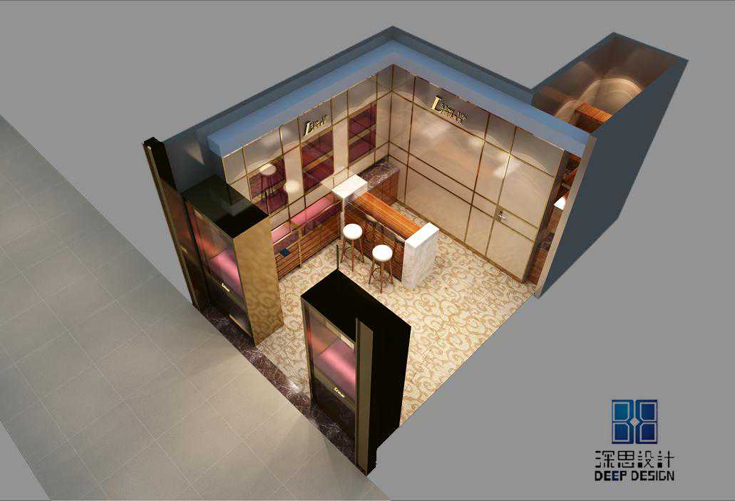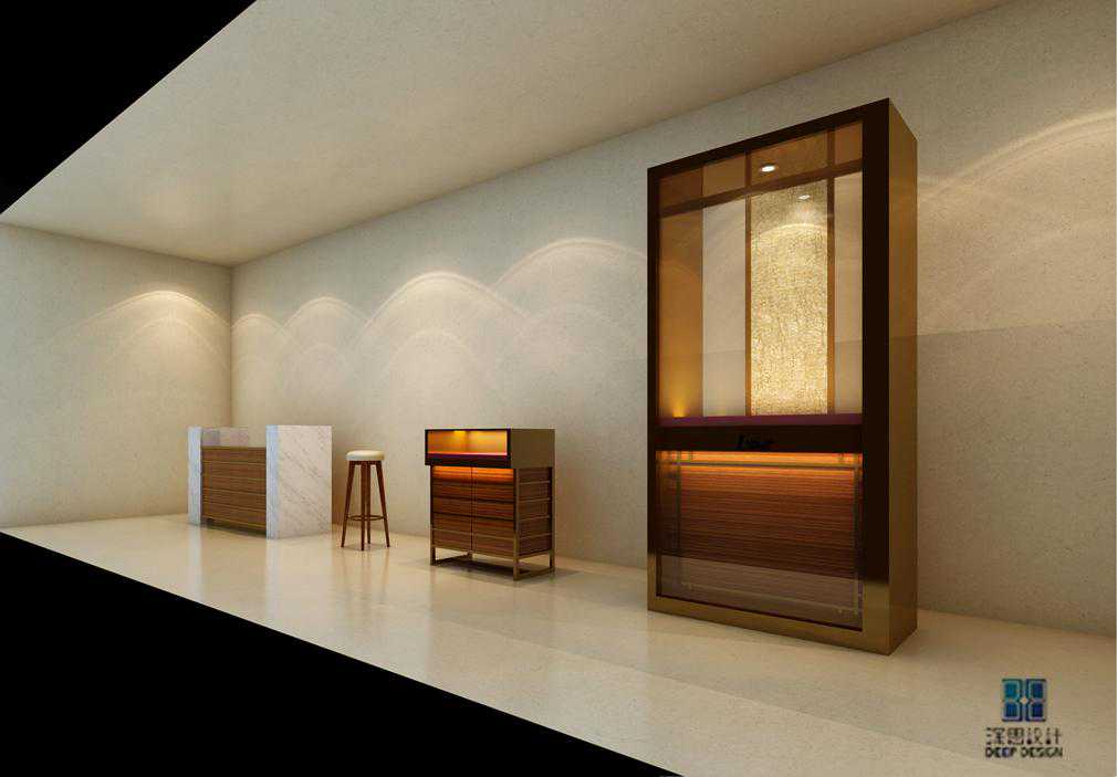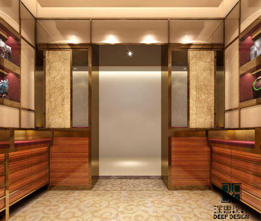 用当代奢华的极致手法,通过各种富有品质感的线条演绎了一种奢华的空间艺术,展现了经典与时尚的完美融合,呈现了极为高超的设计造诣及品味塑造魔法。艳丽的布艺地毯和花梨木饰面板这样的搭配似乎再常规的珠宝店里是根本看不到的,但好像又在哪里见到过类似的场景,没错就是珠宝盒,这里我们把整个珠宝盒内饰放大做成一个展示厅,这样的做法呼应了该案的命名——珠宝盒。
