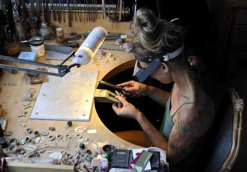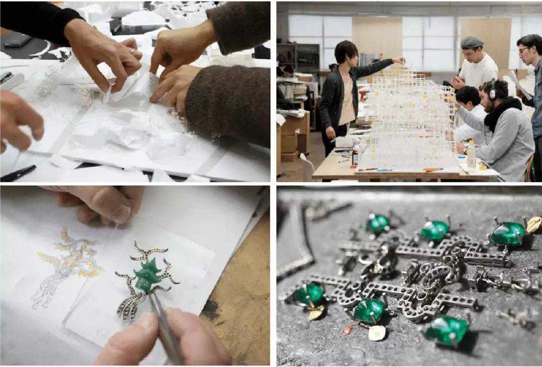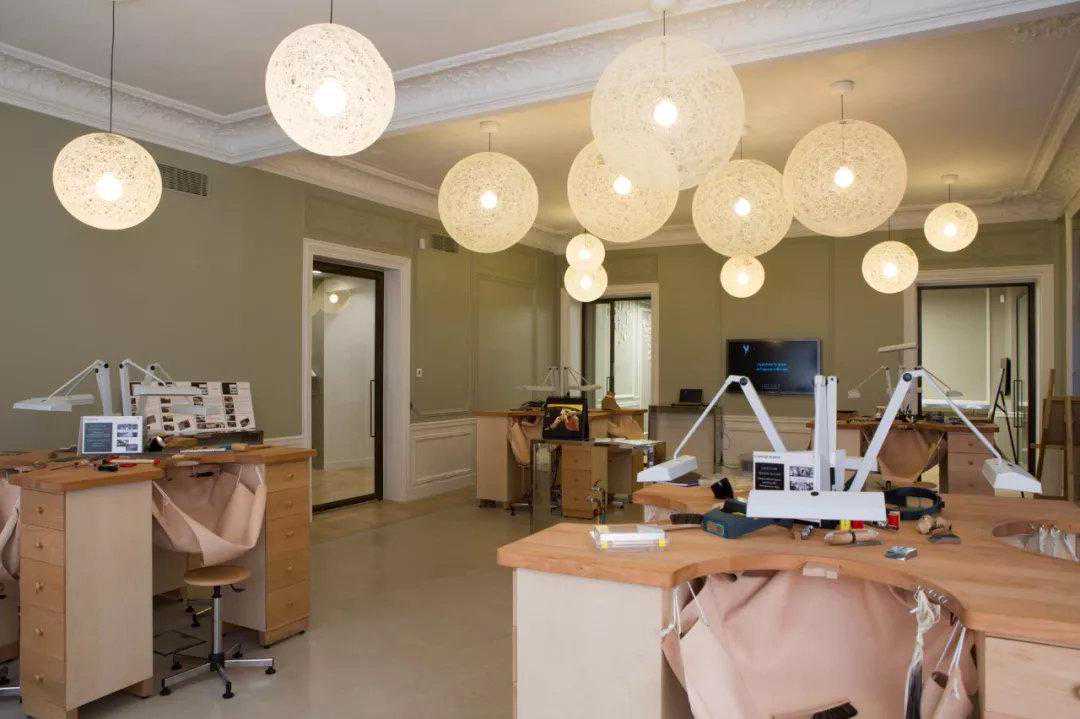 「梵克雅宝工作坊」与珠宝店毗邻而居,工作坊内有最权威的绘图师、模型制作师、镶嵌师、宝石专家、抛光师、雕刻师等各种专家,统称为「黄金之手」Mainsd'Or。