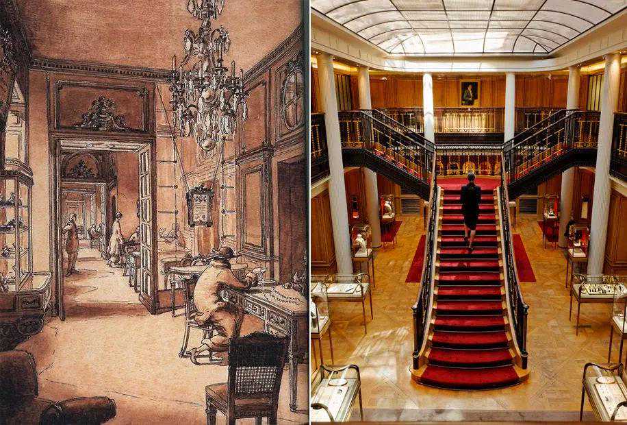 1899年,卡地亚在巴黎和平街13号建立旗舰店。完美保存着18世纪法国古典艺术风格,黑色黄云纹大理石饰面,典雅中蕴含着肃穆的王者之气。