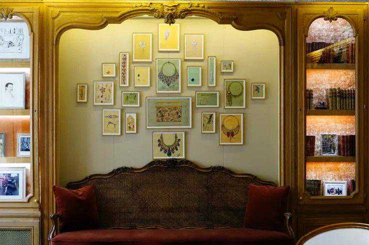宝格丽古董典藏系列的绚烂臻品均汇聚于此。更有墙上宝格丽标志性照片,以及珠宝的原始设计手稿等等,诉说着品牌一个个辉煌的里程碑。