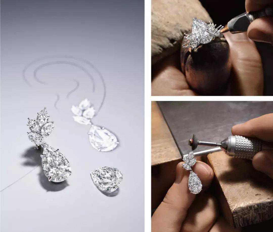 在格拉夫可以目睹明星珠宝诞生的过程。首先设计师画好草图,接着根据草图所标示的尺寸和颜色来选择钻石,而后在凝固的石蜡上完成整个创作。