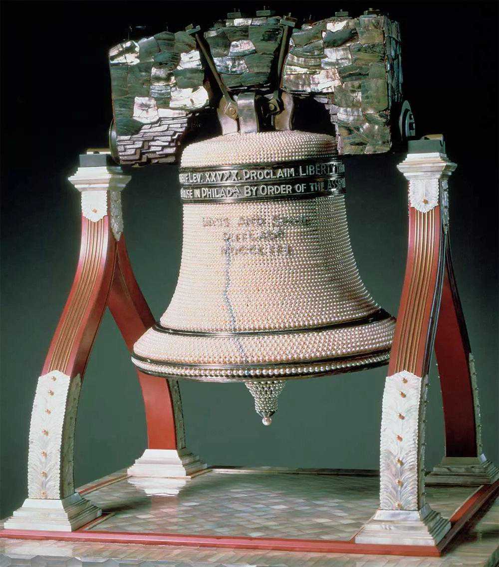 还有用12250颗珍珠和366颗钻石打造而成的「自由之钟」模型。按照费城独立纪念馆自由之钟的1/3设计制作,在1939年纽约世博会上惊艳世界,被誉为「百万之钟」。