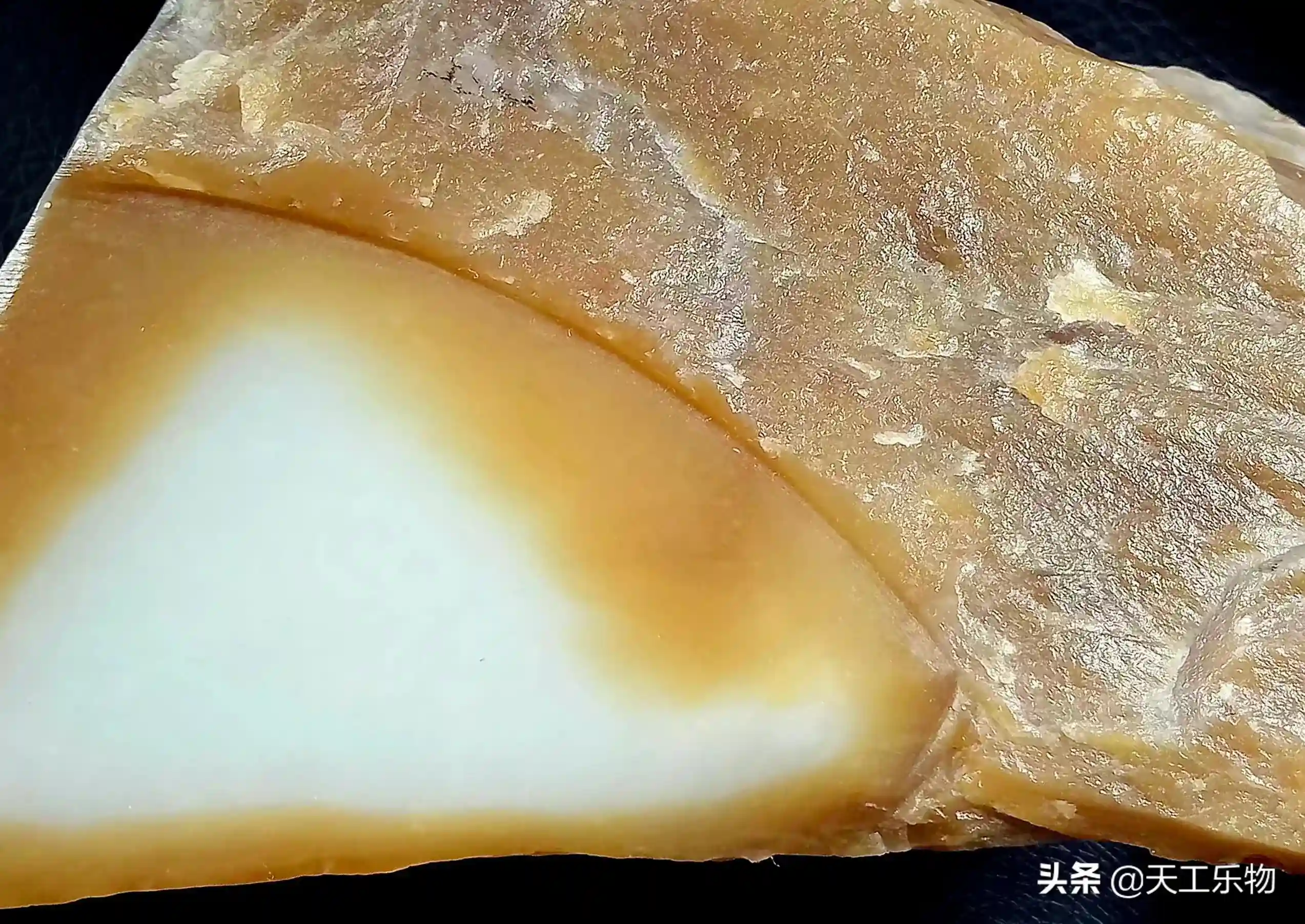 且末料多数都是石包玉矿石,石皮包裹糖色,糖色中心则是温润细腻的白玉山料。