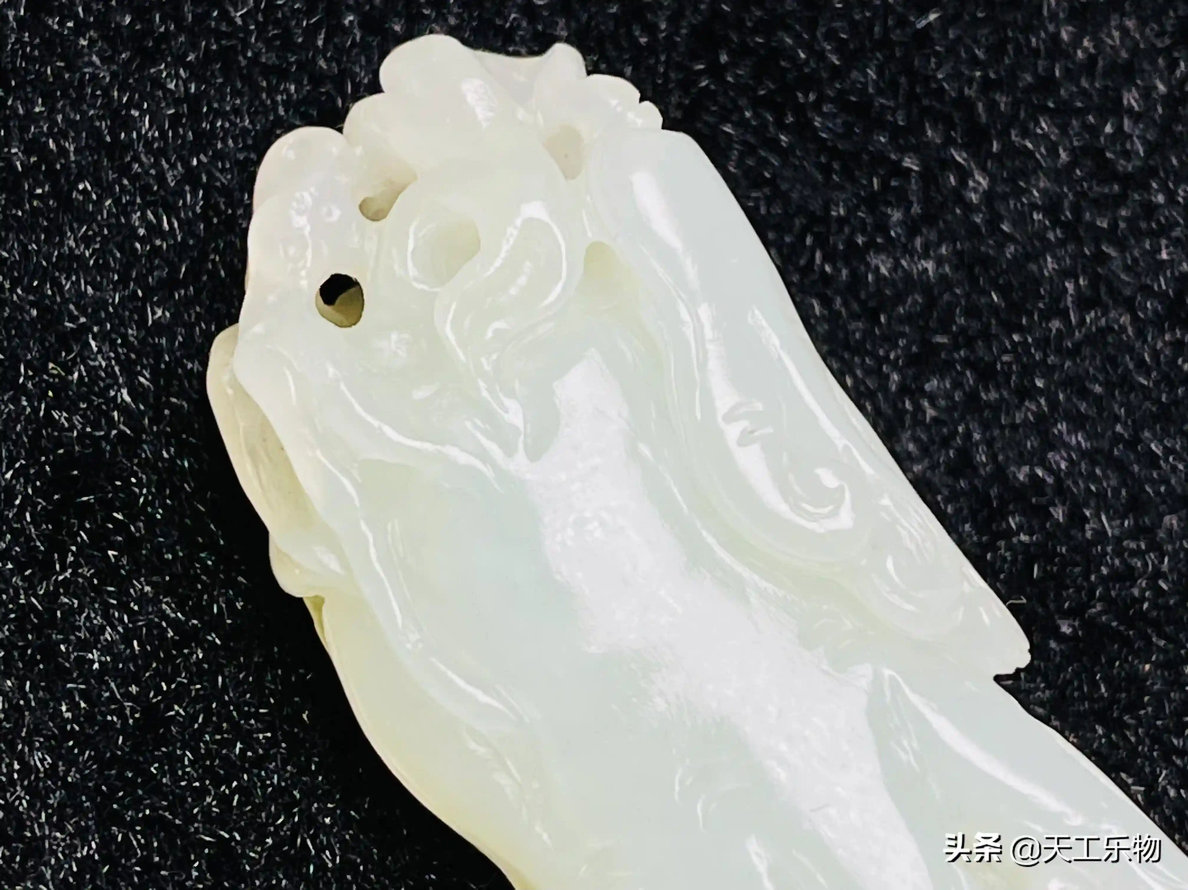 且末白玉的辨识特征也比较明显,玉色白度较高,色调偏冷,接近糖色的部分有时会出现闪青。