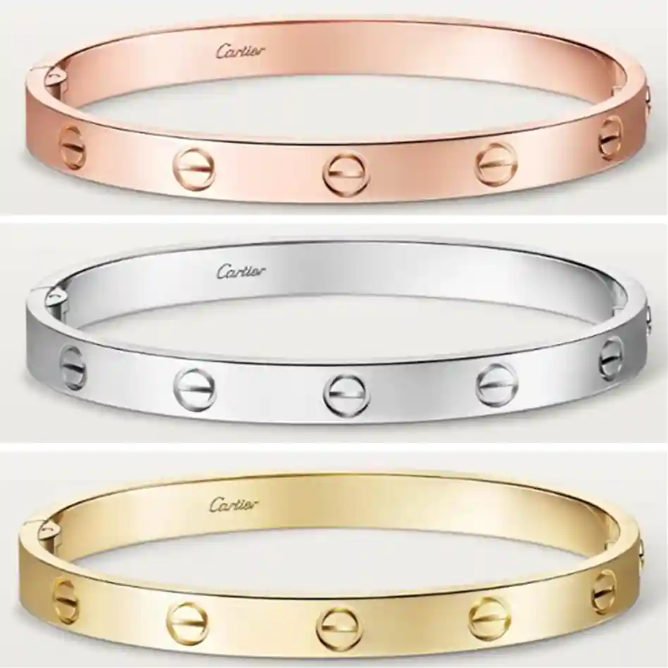 卡地亚Love系列18K经典款螺丝手镯三色对比