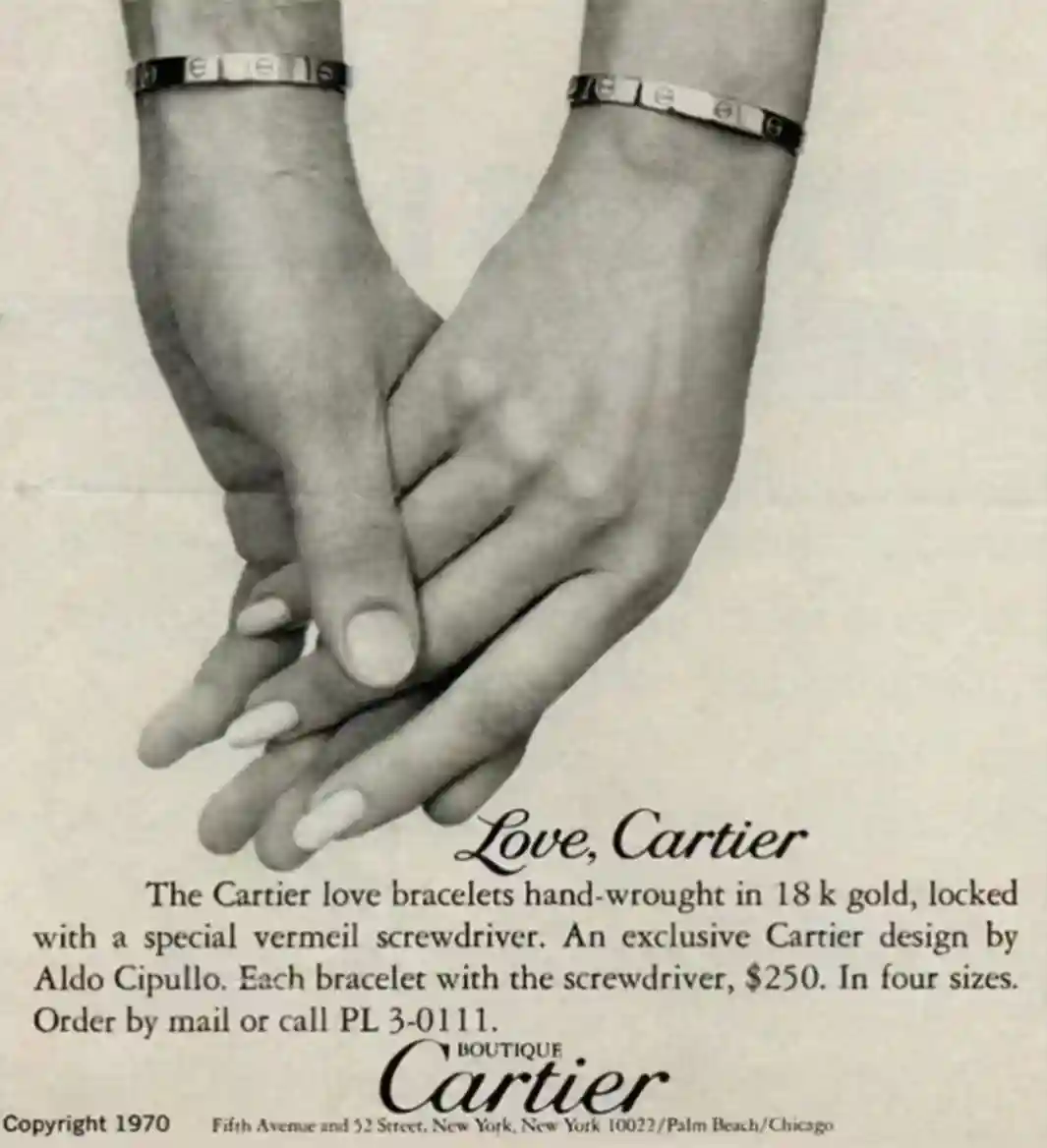 1969年,卡地亚在纽约召开的品牌研讨会上,Love手镯横空出世,其由著名珠宝大师AldoCipullo主持设计,一经推出,便凭借前卫的摩登外观和美好的情感寓意,迅速风靡全球。如今回望,螺丝手镯的出现不仅颠覆了人们对珠宝的固有审美,而且经过半个多世纪的检验与沉淀,其更成为了奢品界中具有划时代意义的经典之作。