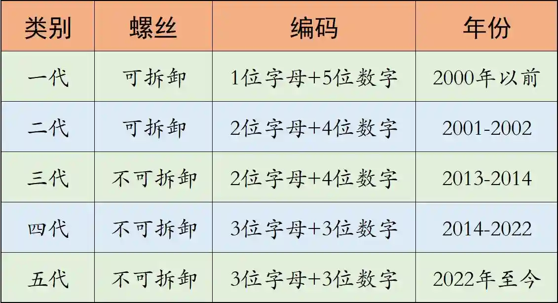 如今,螺丝手镯也已经进化到第五代产品。第一代手镯,可以理解为上个世纪的产物,两侧的螺丝是可拆卸的,编码为一个字母加上五位数字;第二代始于2001年至2002年,内部刻字变成了两个字母加上四位数字。2013年以后,螺丝手镯在结构上加以改进,两侧的螺丝不再能拆卸。2014年至2022年,也就是所谓的第四代,这期间的刻字编码变成了三个字母加上三位数字,同时刻字字体也进行了更换。而2022年至今也被称为第五代,最大变化即螺丝卡位的内圈改换成封闭式底盖。此外,卡地亚刻字信息的字母也代表了不同的年份。