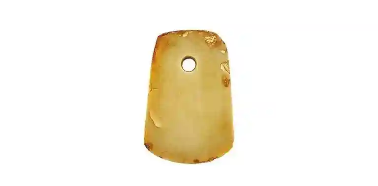 在1959年第一次正式发掘中,共探明了部分房基遗址和57座墓葬。在丰富的史前文物中,一件铲状的大型玉器令人眼前一亮,经鉴定为独山玉,年代可上溯至5000多年,它就是大名鼎鼎的“中华第一铲”(见下图)。后来,人们发现,这件“玉铲”应该是象征王权与身份的玉钺。玉钺玉质如新、形态完整,是黄山遗址中采用磨制玉器的典型代表,现藏于河南博物院。