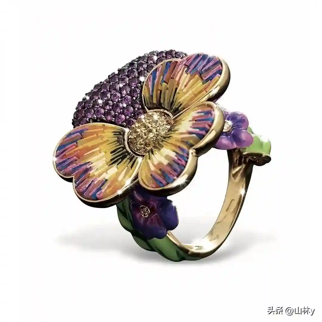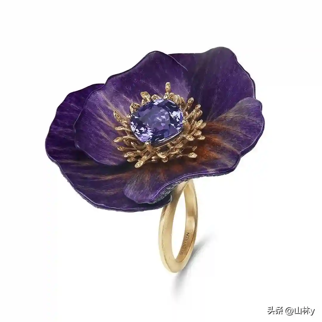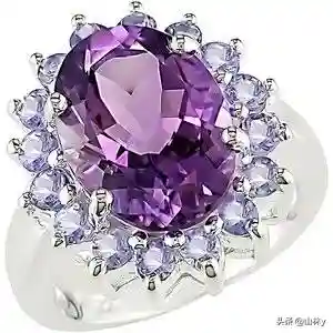 设计巧妙的一款戒指,紫色花朵的正中间是一颗硕大的紫水晶。