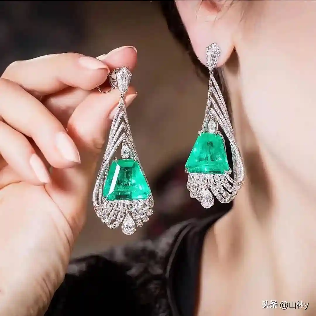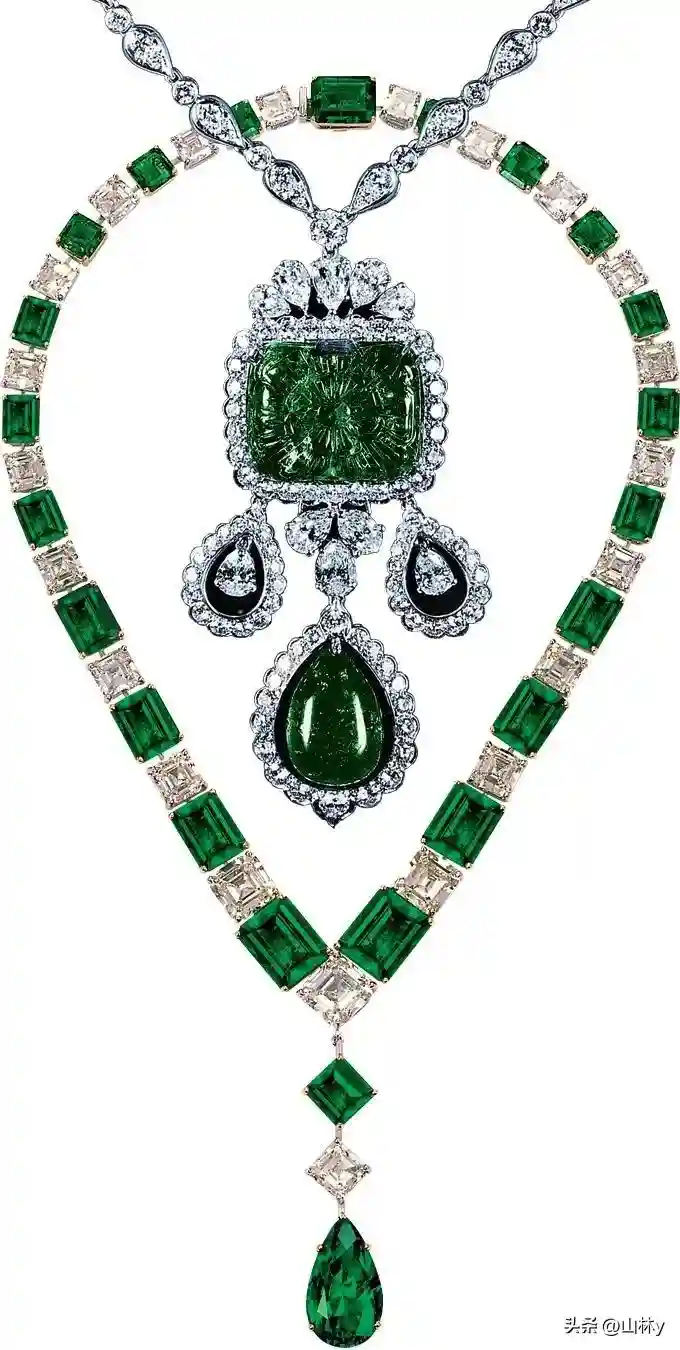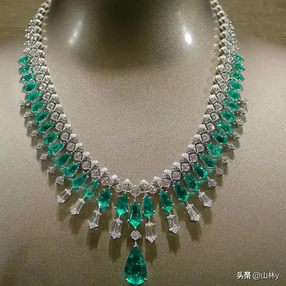 由绿宝石和白钻镶嵌做成的项链,晶莹剔透,华贵大气,美极了!