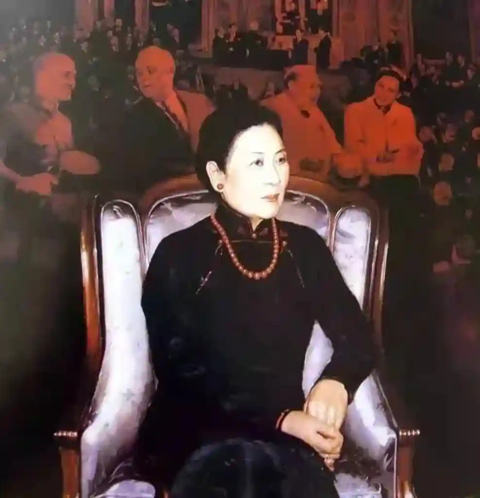 图中宋美龄所佩戴的红珊瑚项链,是台湾大东山珊瑚的杰作,是一条完全没有白芯的Aka项链,品相如此之好的项链目前在全世界不会超过100条。此项链是画家李斌购于台湾珊瑚鼻祖企业大东山,而后赠送给宋美龄的。之后画家又为宋美龄女士画了这幅油画,此画由画家本人赠送与大东山,现在留存于大东山。