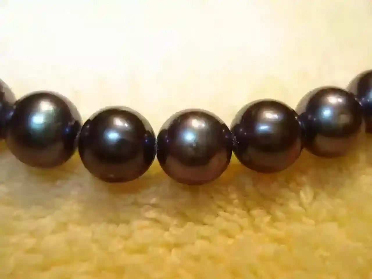 染色黑珍珠在荧光灯下,会显示暗红色的荧光,而天然的黑珍珠并不具备这一特征。