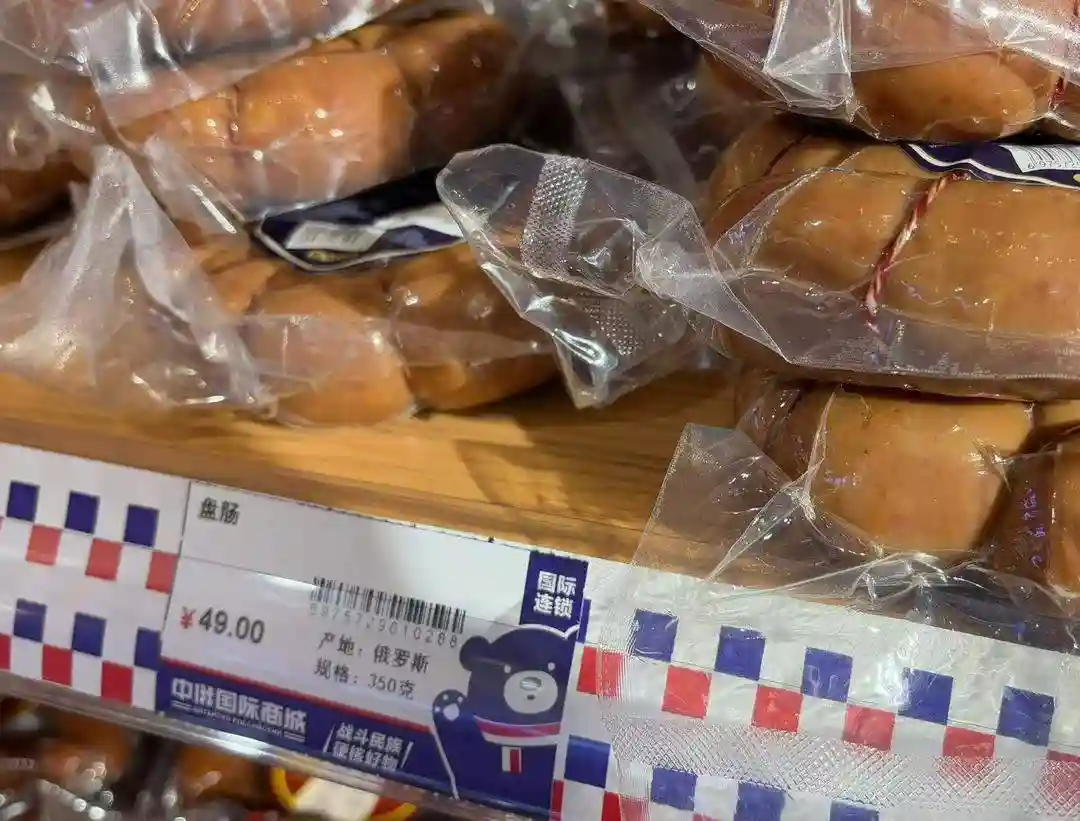 如果说“委托加工”,还多少和俄罗斯沾点边儿,肉制品货架上,一款“喀秋莎”盘肠,则是连外文包装也没有,直接以中文注明,生产商是绥芬河一家食品公司,产地为黑龙江省牡丹江市。但货架上安插的价格标签却写明,其产地为俄罗斯。