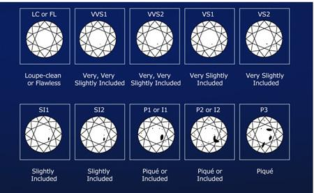 净度级别“VS”:之前有提过宝石包裹体的概念,钻石也会含有包裹体,根据发现包裹体的难易程度分为:FL-P3,越往后表示包裹体越容易发现。一般包裹体越难发现价格越高。