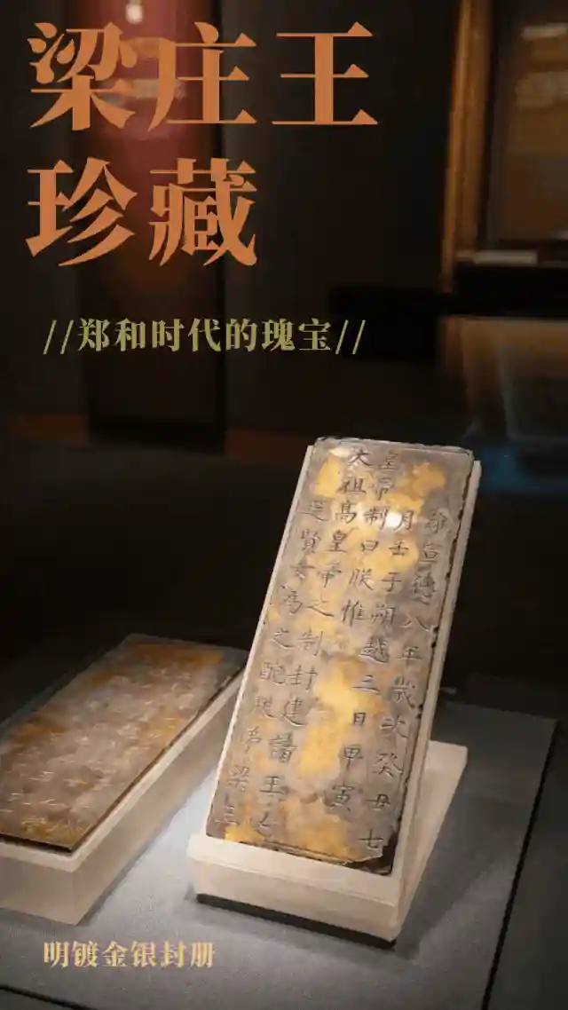 已发掘的明代亲王墓中常有谥册,少见封册。梁庄王墓发现了王妃封册,封册为镀金银封册,是王妃魏氏于明朝宣德八年被册封为王妃时的任命文书。封册每板长23厘米、宽9.1厘米、厚0.4厘米,重1839.8克。由2块同样大小的长方形镀金银板扣合而成,板内铸有册文88字:“维宣德八年,岁次癸丑,七月壬子朔,越三日甲寅,皇帝制曰:‘朕惟太祖高皇帝之制封建诸王,必选贤女为之配。朕弟梁王年已长成,尔魏氏乃南城兵马指挥魏亨之女,今特授以金册,立为梁王妃,尔尚谨遵妇道,内助家邦,敬哉。’”这是我国发现的首件亲王妃封册实物,是研究明亲王葬制的新材料。