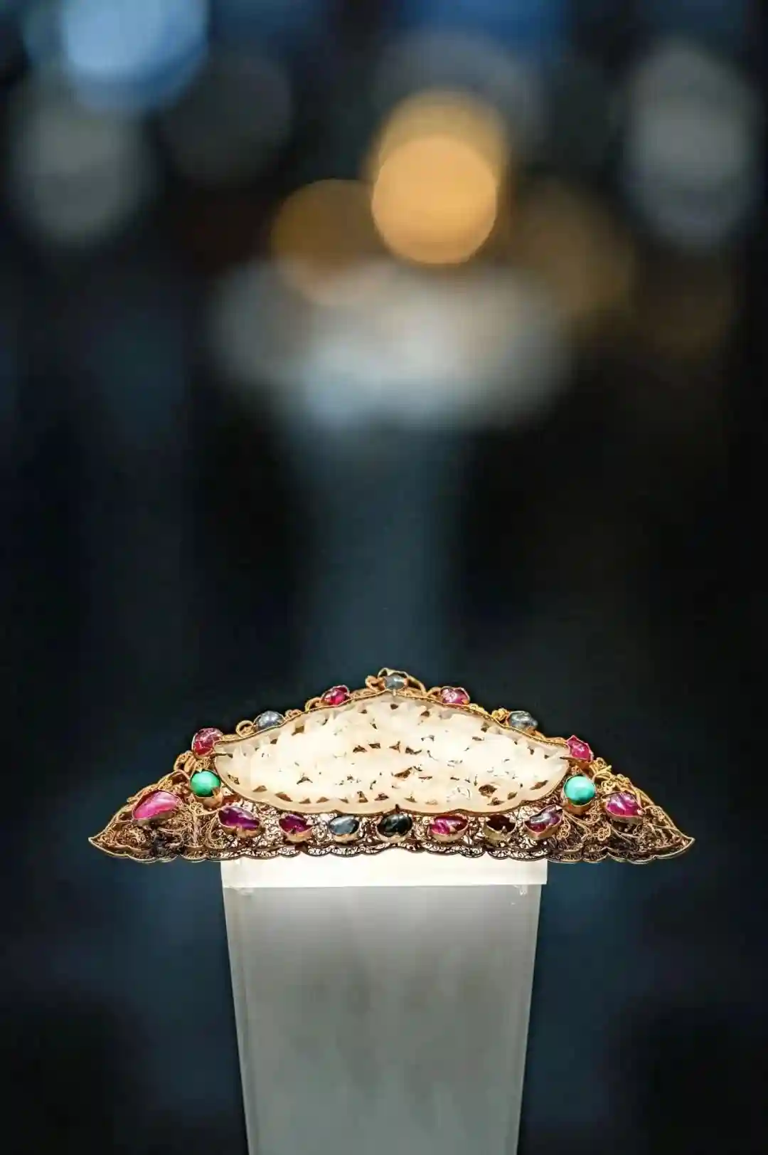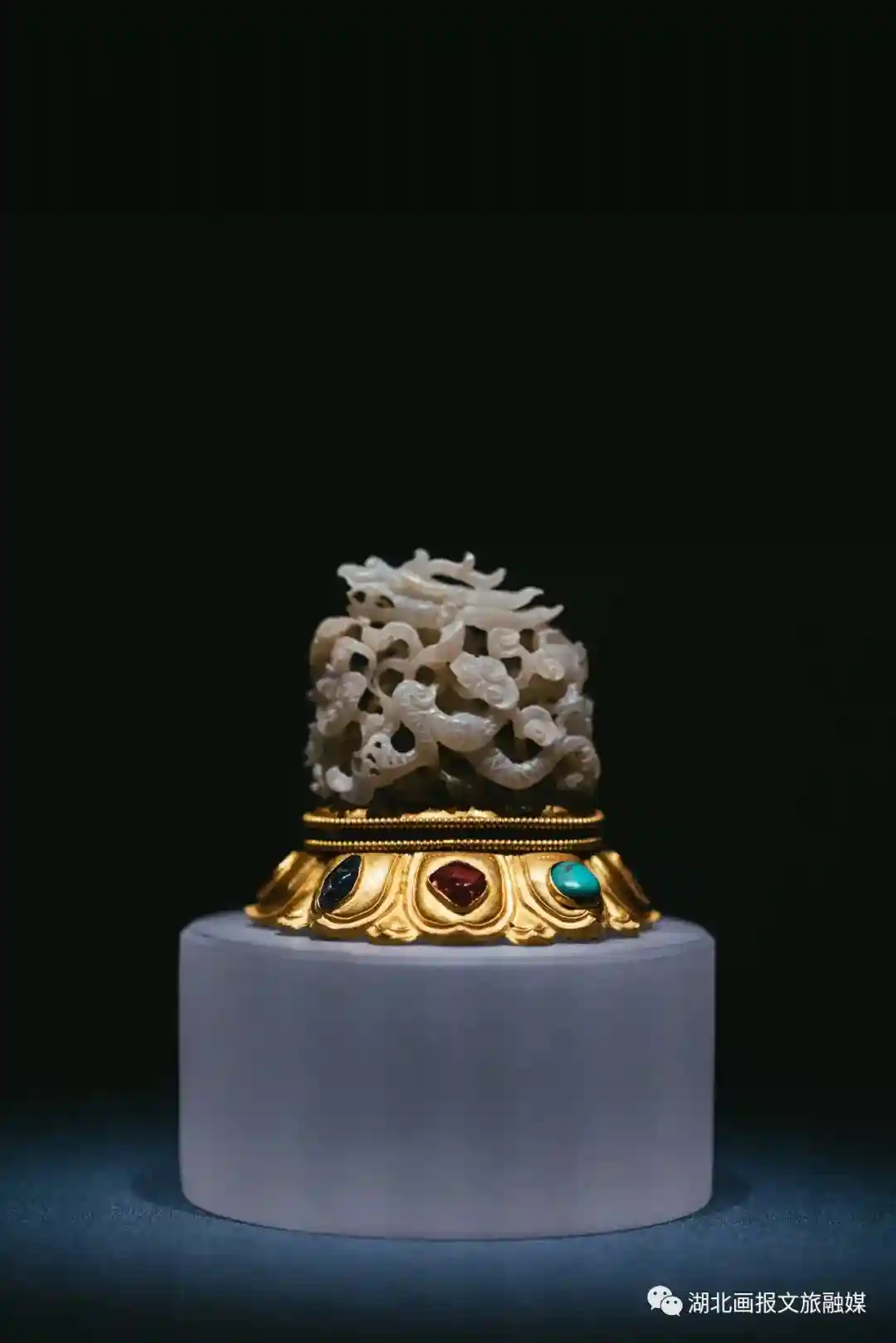 ⾦镶宝⽯⽩⽟云⻰帽顶图/苏卓琳