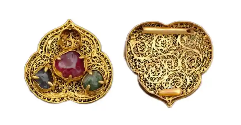 云形金累丝镶宝石掩鬓图/湖北省博物馆