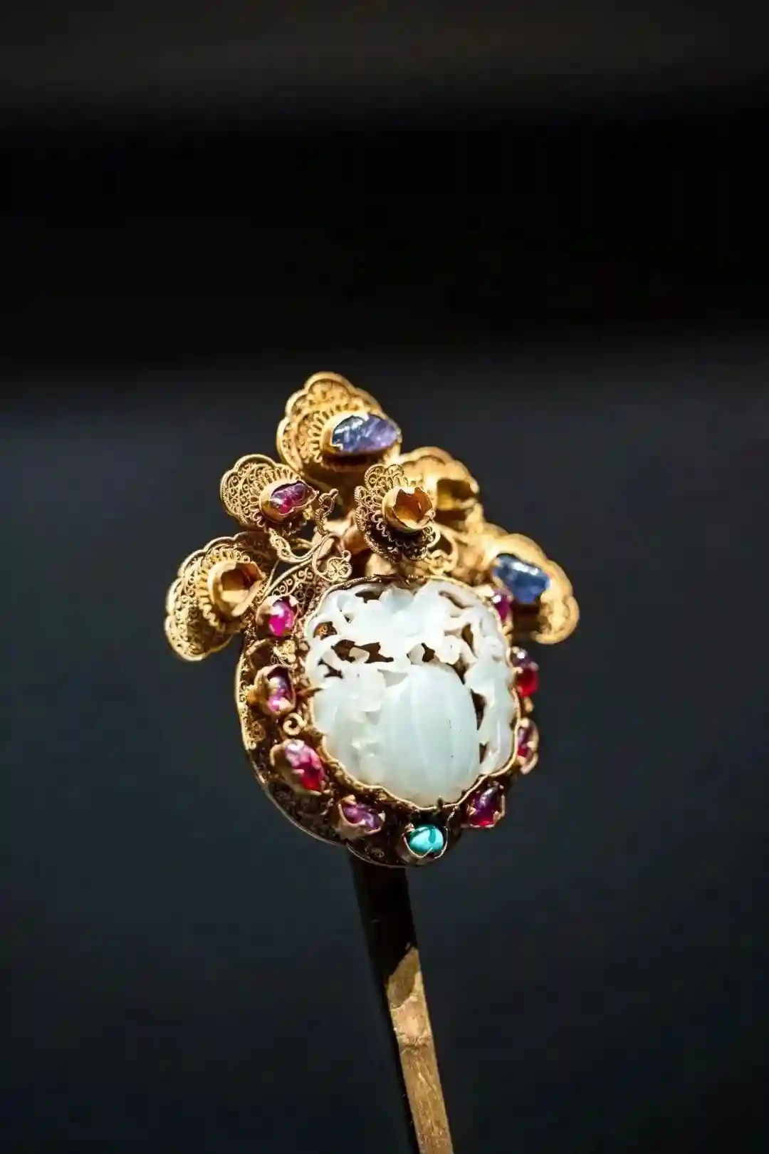 金累丝镶宝石青玉香瓜簪图/湖北省博物馆