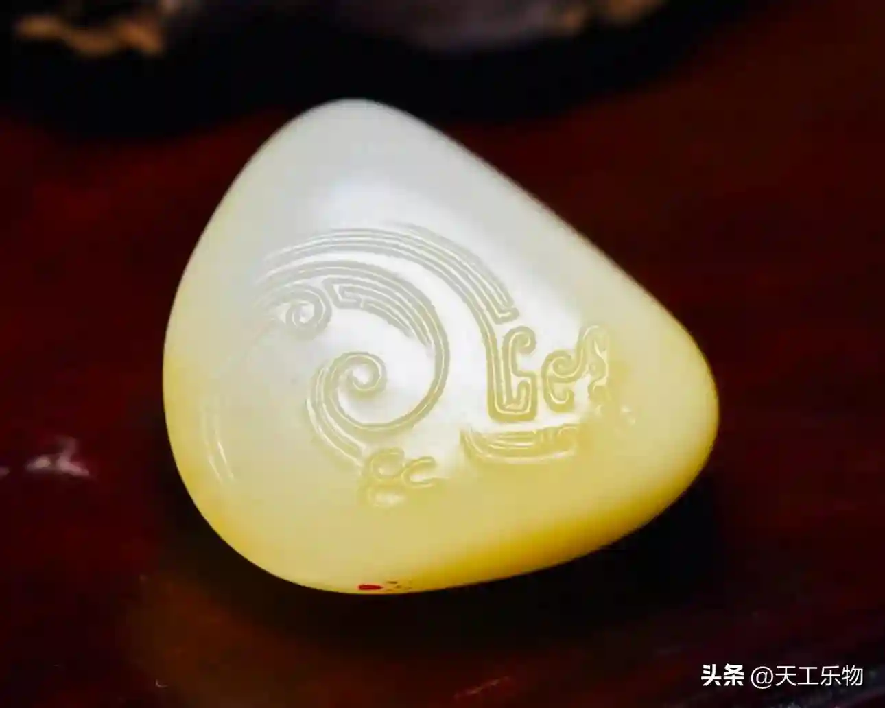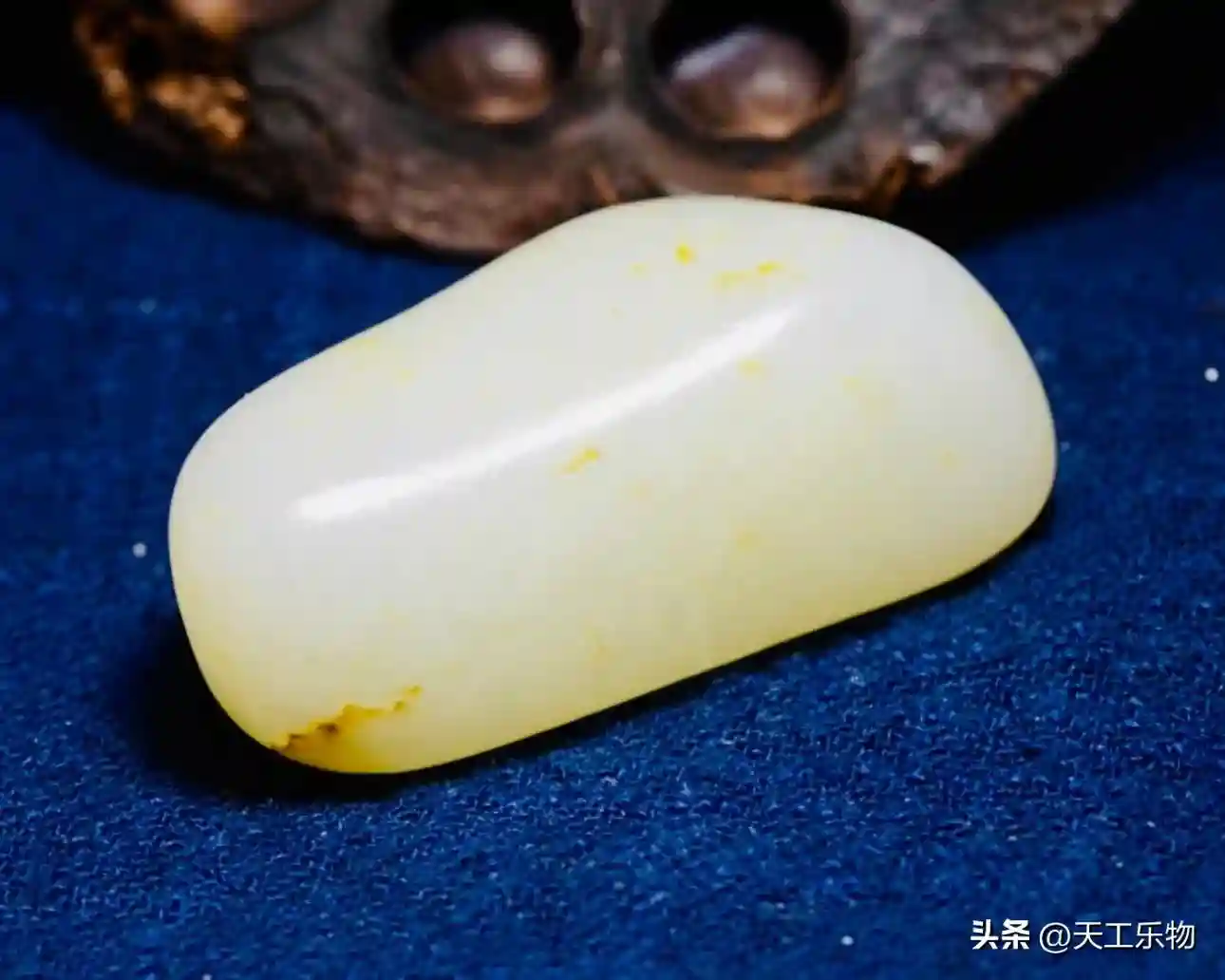 黄白玉种是一种白度不高,整体偏向暖白的特殊白玉,也是和田籽料最有代表性的“脂白色”。